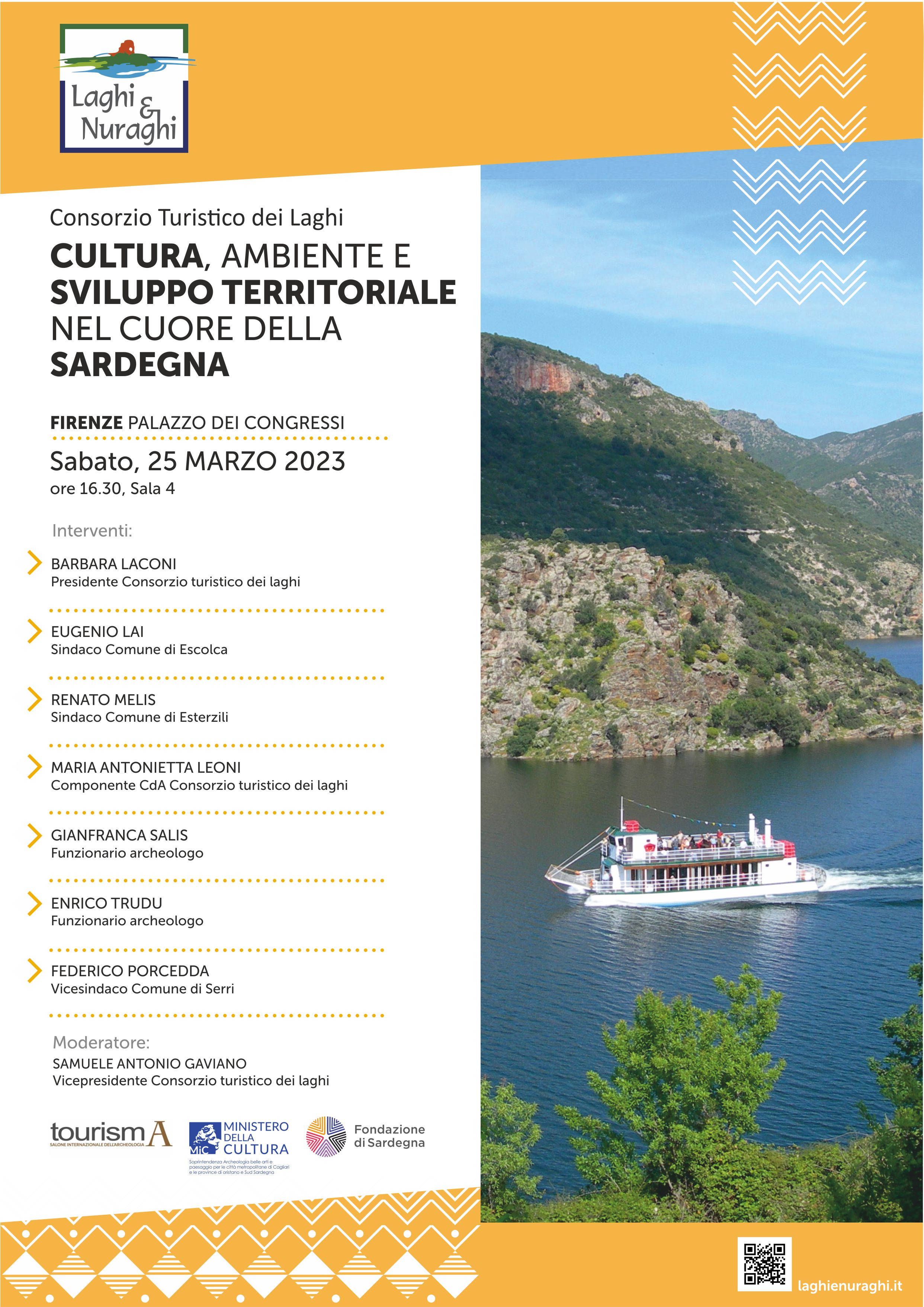 Il Convegno dal titolo: Cultura, ambiente e sviluppo territoriale nel cuore della Sardegna organizzato dal Consorzio Turistico dei Laghi si svolgerà il giorno 25 marzo 2023 alle ore 16:30 nella sala congressi a Firenze.